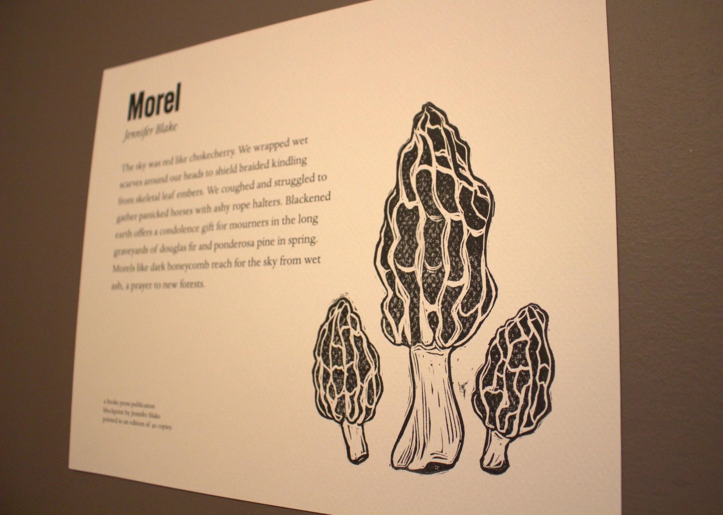 poem and block print by Jennifer Blake. poem is digitally printed in the broke press basement suite, with the block print added in an Armstrong, BC, farm house.